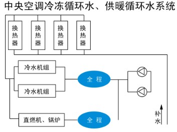 ?中央空調(diào)、冷水機(jī)組、制冷機(jī)子準(zhǔn)卻、冷凍循環(huán)水系統(tǒng)。